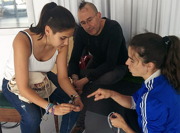 - Raquel Buil junto a la alumna y músico Claudia Gonzalo y Jesús Gonzalo López